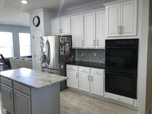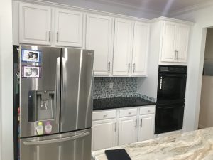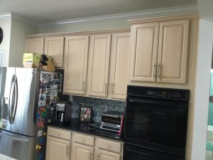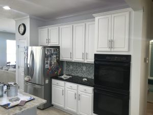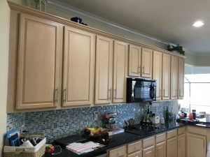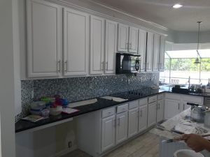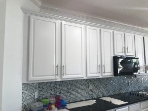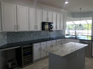 This Sawgrass home in Ponte Vedra underwent a complete kitchen cabinet transformation, turning dated stained wood cabinets into a bright Extra White finish that completely refreshed the space.