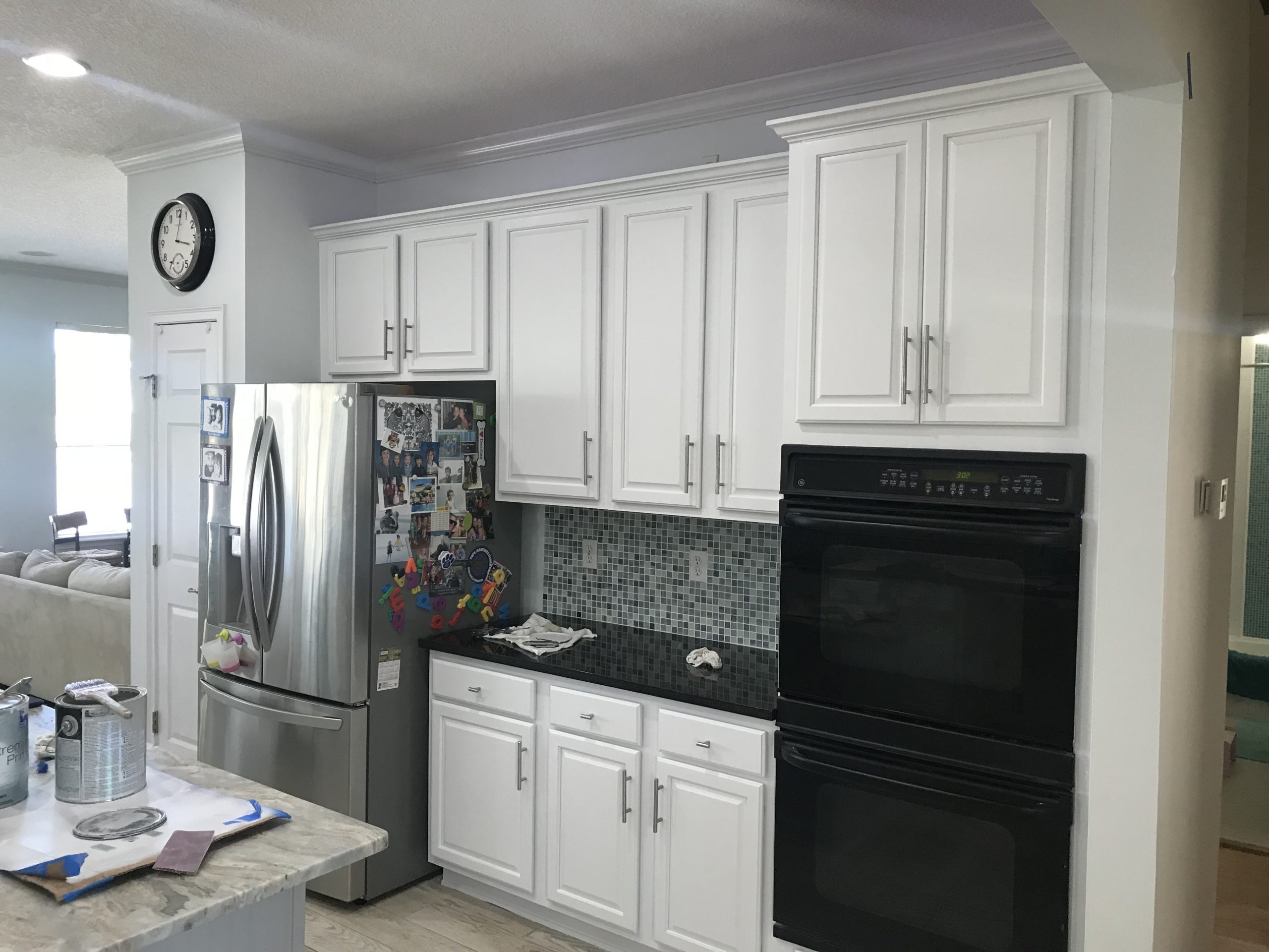 💡 Key Transformation: Cabinet Painting From stained wood to crisp Extra White luxury cabinets