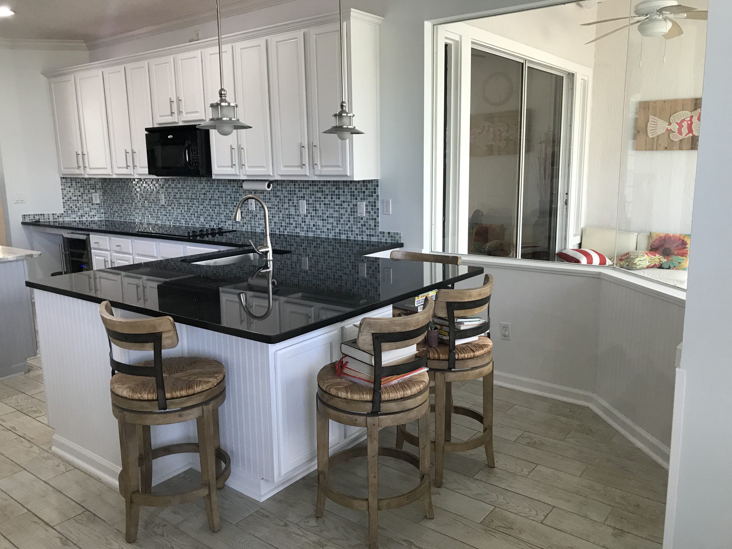This Sawgrass home in Ponte Vedra underwent a complete kitchen cabinet transformation, turning dated stained wood cabinets into a bright Extra White finish that completely refreshed the space.